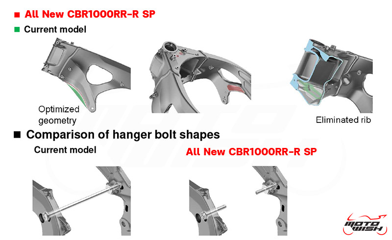 Khung động cơ (body engine) đã được thiết kế lại để giảm trọng lượng, giảm được hơn 250 gram so với phiên bản cũ, đặc biệt là ở phần vỏ động cơ.