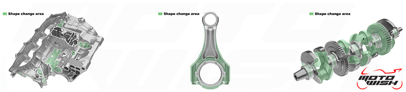 Trục khuỷu (crankshaft) giảm trọng lượng tới 450 gram so với phiên bản cũ bằng cách điều chỉnh thiết kế và thay đổi kích thước đường kính của chốt thanh truyền.