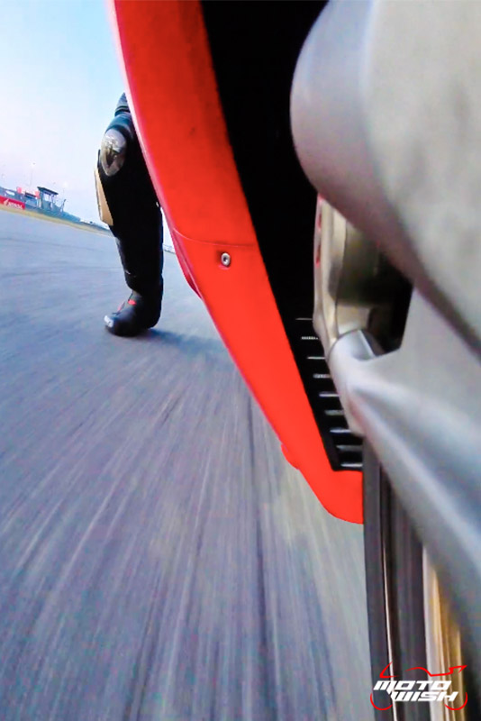 Bức ảnh này được chụp từ camera gắn trên mũ bảo hiểm, là lần thử xe thứ hai của tester trong buổi thử nghiệm, cụ thể là trong bài kiểm tra “Endurance 1 hour” vào khoảng 19:45. Tốc độ tối đa trên đường thẳng của “Sân đua Chang International Circuit” hiển thị trên màn hình là 281 km/h.