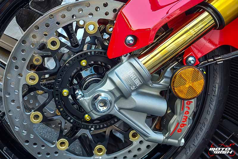 Đĩa phanh trước có đường kính 330mm và độ dày 5mm, đi kèm với kẹp phanh Brembo Stylema R 4 piston dạng xe đua, giúp chịu nhiệt tốt hơn trong quá trình phanh và tăng hiệu quả phanh trên đường đua. Đĩa phanh sau có đường kính 220mm, đi kèm với kẹp phanh 2 piston của Brembo, giống với phiên bản cũ (phanh sau giống như mẫu cũ).