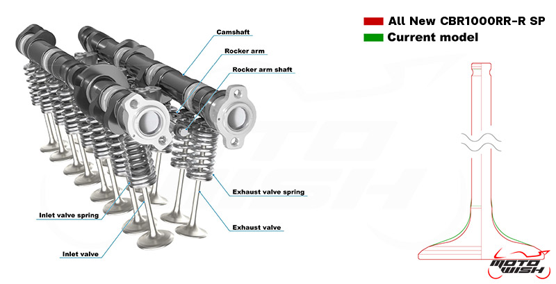 Cam động cơ được cải tiến với hành trình nâng của van nạp và xả mới. Lò xo van được thiết kế lại cho cả van nạp và xả, trong khi van nạp có hình dạng mới và giảm trọng lượng để chịu được công suất động cơ tốt hơn.
