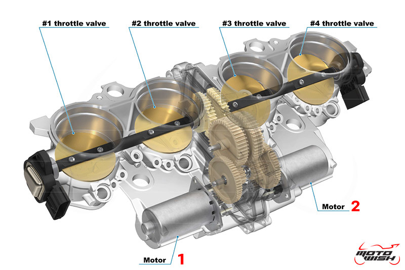 Hệ thống bướm ga của All New CBR1000RR-R SP có hai mô-tơ điều khiển riêng biệt, thay vì một mô-tơ như phiên bản trước. Mô-tơ bên trái điều khiển van bướm ga cho xy-lanh 1-2, trong khi mô-tơ bên phải điều khiển van bướm ga cho xy-lanh 3-4.